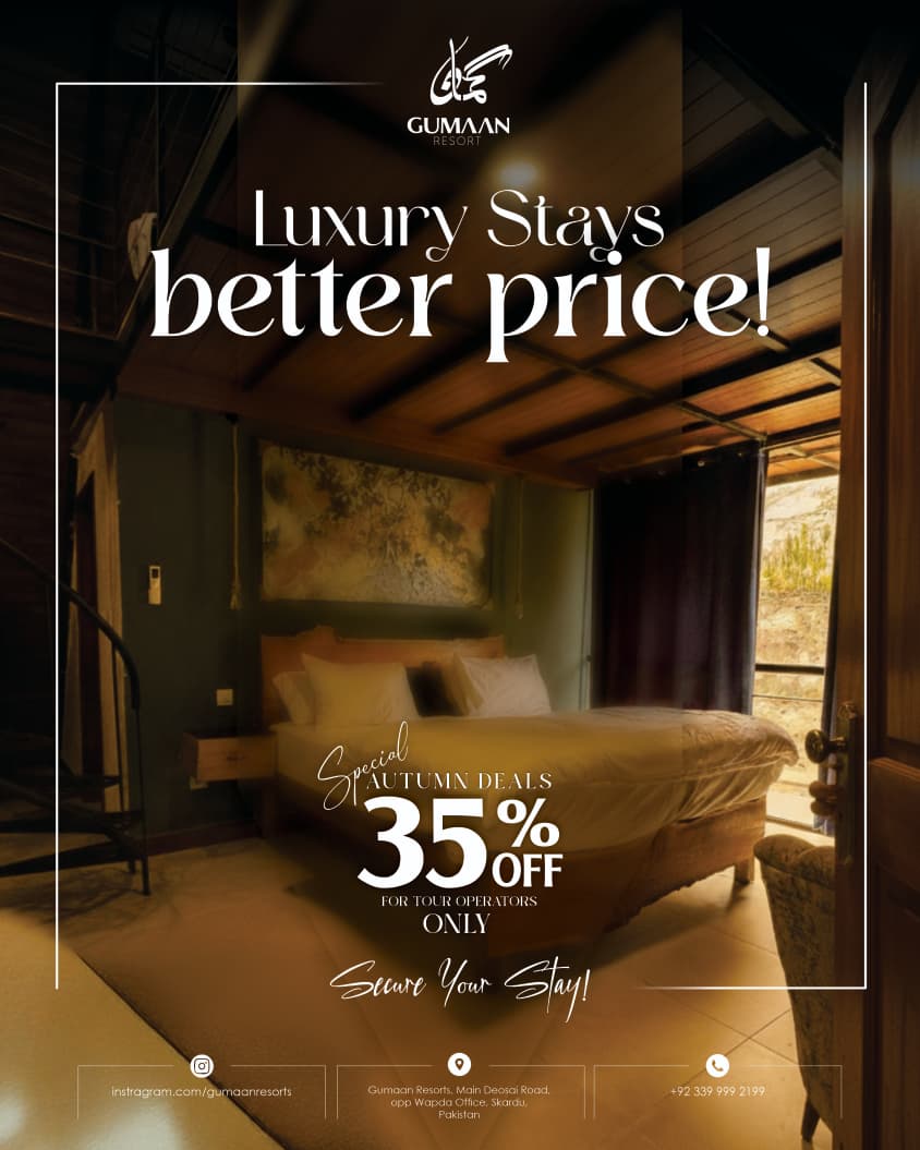 Stay connected with Gumaan Skardu! Our Latest News & Updates section is your go-to source for fresh information on our hotel offerings, exclusive promotions, and exciting events happening in and around Skardu. Whether you’re planning your next getaway or simply staying informed, our updates ensure you never miss out on what’s new. Check back regularly to make the most of your experience with Gumaan!